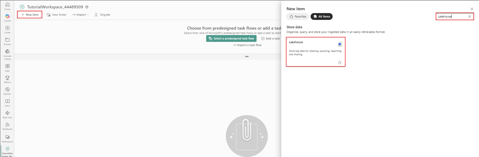 Kirjoita nimeksi TutorialLakehouse .