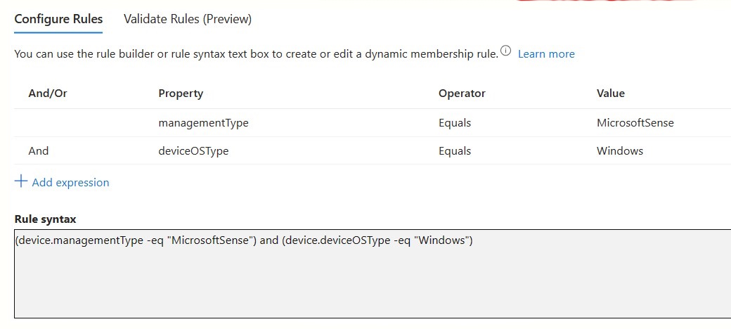 Custom scripts and Microsoft Entra dynamic device groups created before this change that specify rules that reference only Windows might exclude Windows Servers when used with the Security Management for Microsoft Defender for Endpoint solution. For example: