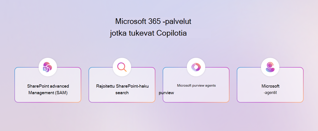 Microsoft 365 -käyttöoikeutesi sisältää palveluita ja ominaisuuksia, joiden avulla saat tietosi ja organisaatiosi valmiiksi Copilotia varten.
