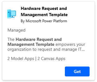 Jos luettelokohde on hallittu kohde ja se on jo asennettu ympäristöön, hallittua kohdetta ei voi asentaa uudelleen, koska ympäristö jakaa kyseisen hallitun kohteen. Jos hallittu kohde on jo asennettu ympäristöön ja hallittuun kohteeseen on julkaistu päivitys, Hanki-kohdan asemesta näet Päivitä-painikkeen, joka päivittää jaetun hallitun ratkaisun ympäristössä. Jos hallittu kohde on jo päivitetty eikä uusia päivityksiä ole julkaistu, Päivitä-painike poistetaan käytöstä, kunnes uusi päivitys julkaistaan.