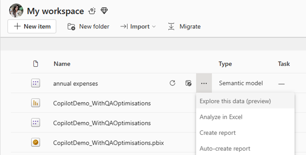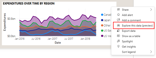 Power BI -palvelun Explore-ominaisuus on tällä hetkellä esikatselussa.