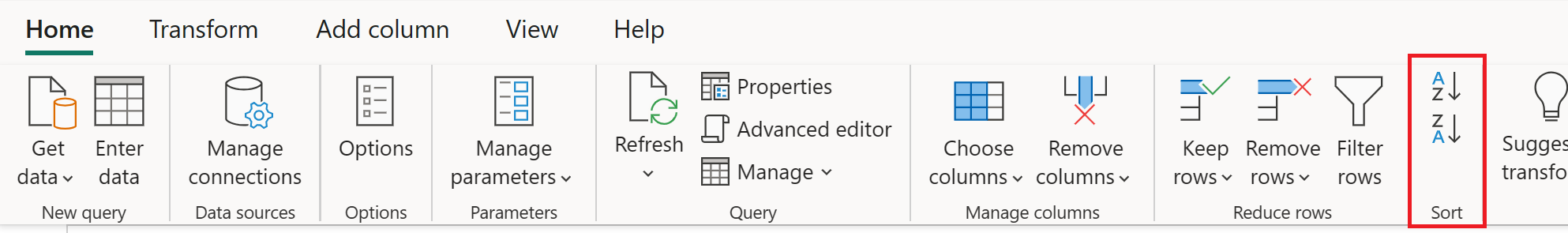 Aloitus-välilehden Lajittele-ryhmässä on kuvakkeita, joiden avulla voit lajitella sarakkeen nousevaan tai laskevaan järjestykseen.