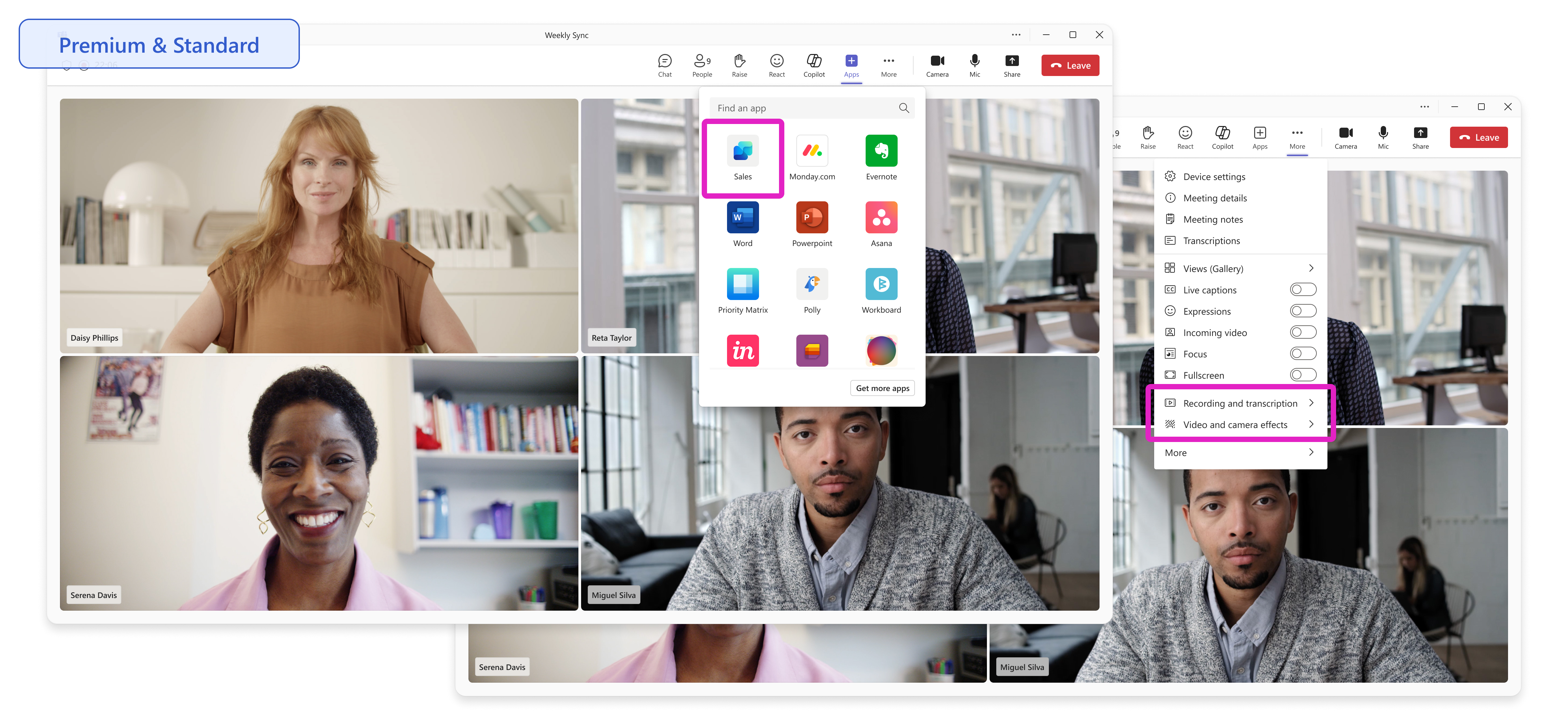 • Manually - During a Teams meeting, you can add Sales in Microsoft 365 Copilot as an application by using the + Apps icon. After adding the app, you'll need to record and transcribe the meeting.