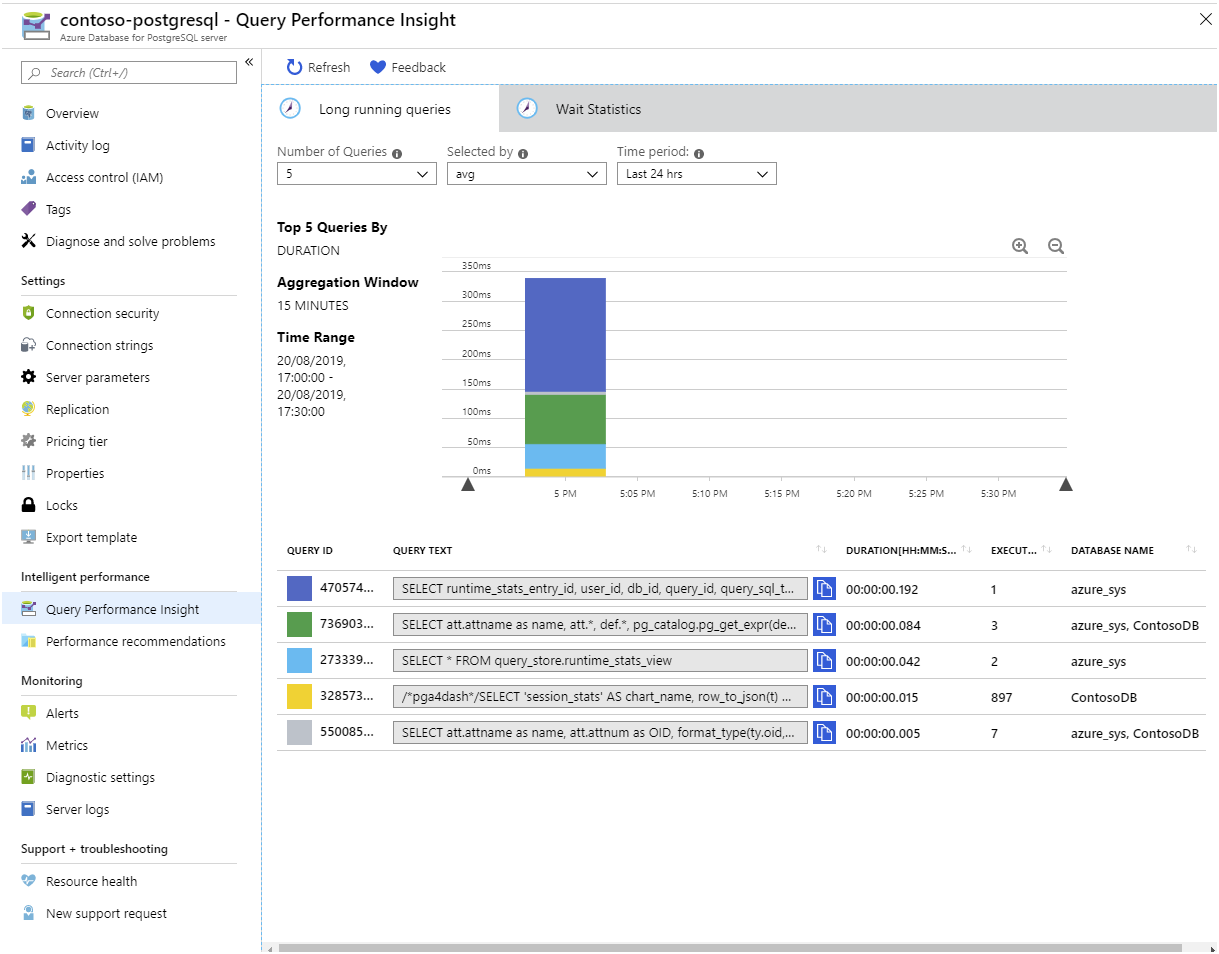 Jos haluat visualisoida nämä tilastotiedot SQL-lausekkeiden käyttämisen sijaan, käytä Query Performance Insightia Azure-portaalissa: