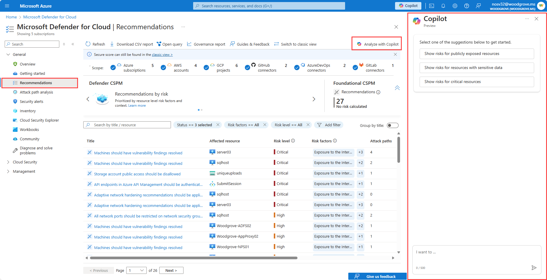 Analysoi suosituksia security Copilotilla