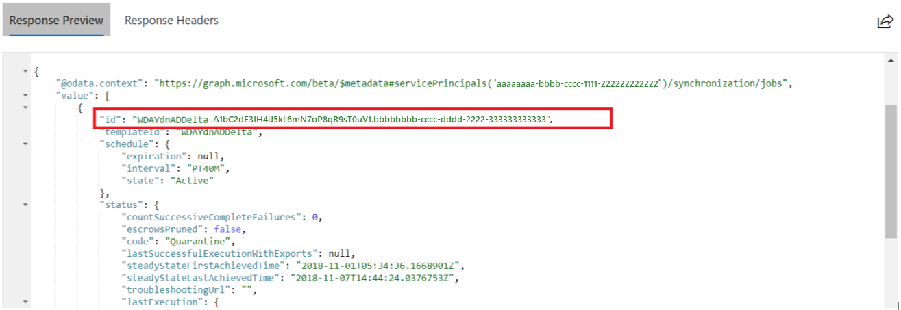 GET https://graph.microsoft.com/beta/servicePrincipals/[servicePrincipalId]/synchronization/jobs