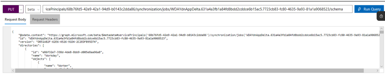 PUT https://graph.microsoft.com/beta/servicePrincipals/[servicePrincipalId]/synchronization/jobs/[ProvisioningJobId]/schema