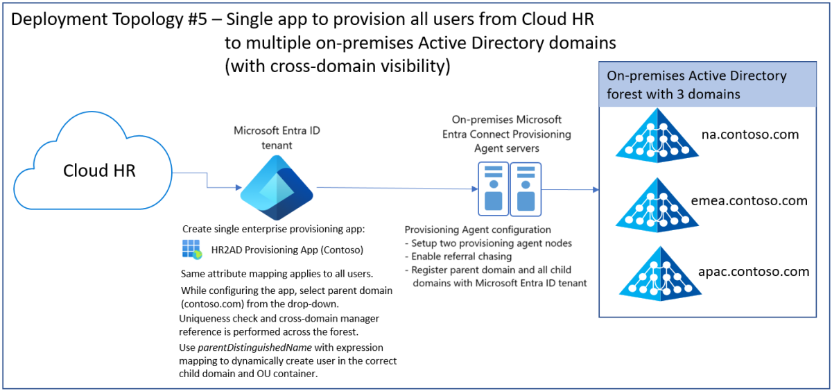 - Single cloud HR app tenant -> target multiple child domains in a disjoint Active Directory forest