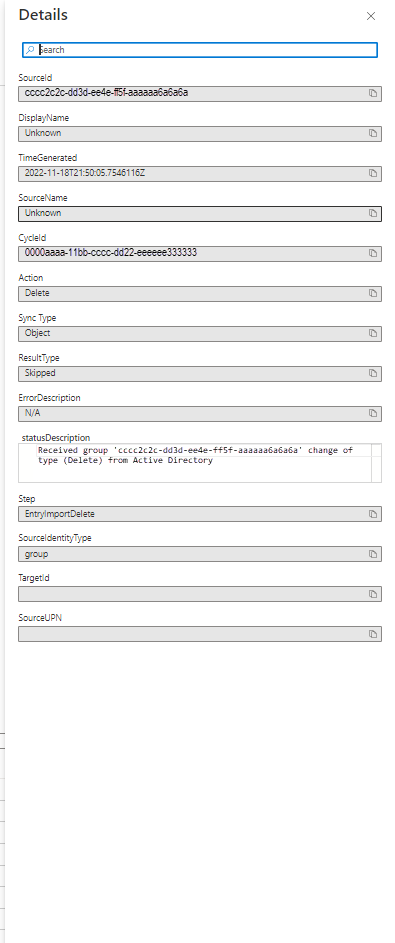 Clicking on the Source ID it will dive deeper and provide more information on the synchronized object.