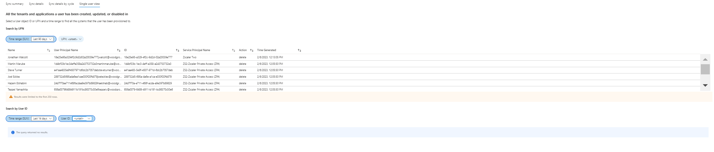 The user provisioning view tab allows you to get synchronization data on individual users.