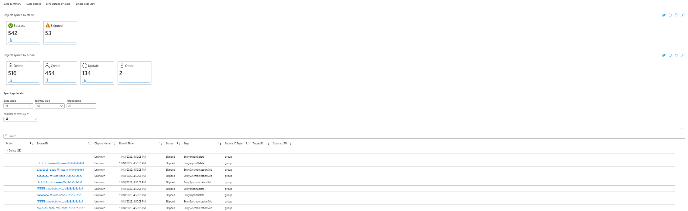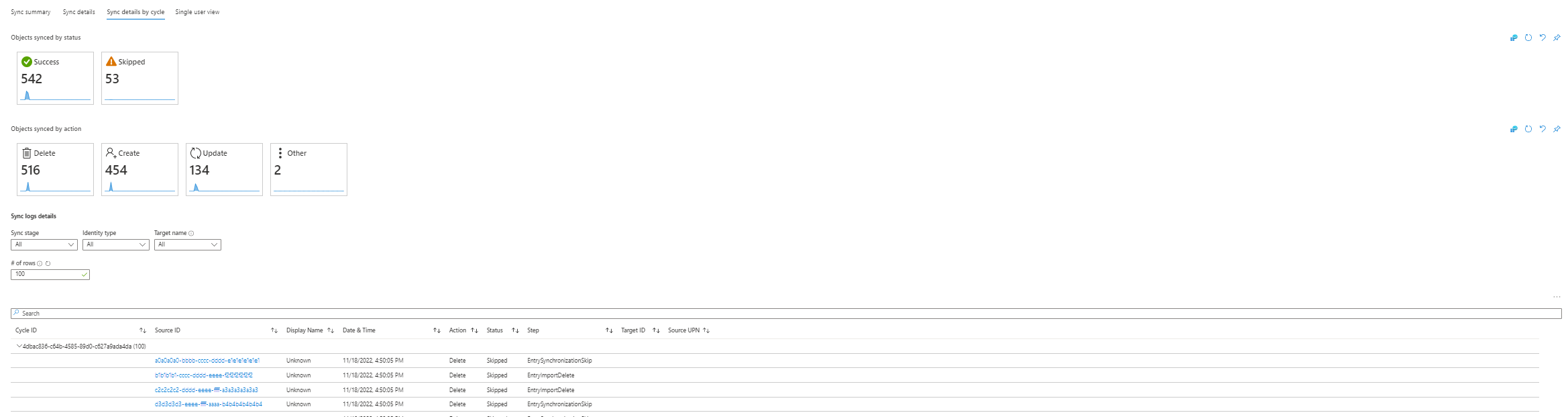 This workbook is intended for Hybrid Identity Administrators who use provisioning to sync users from various data sources to various data repositories. It allows admins to gain insights into sync status and details.