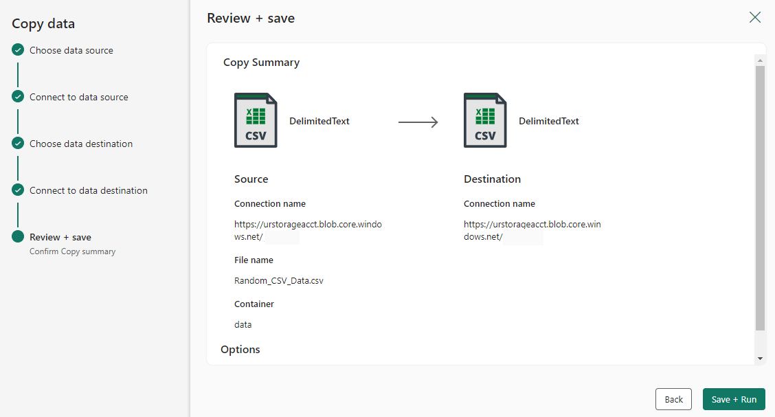 Review your copy activity settings in the previous steps and select OK to finish. Or you can go back to the previous steps to edit your settings if needed in the tool.