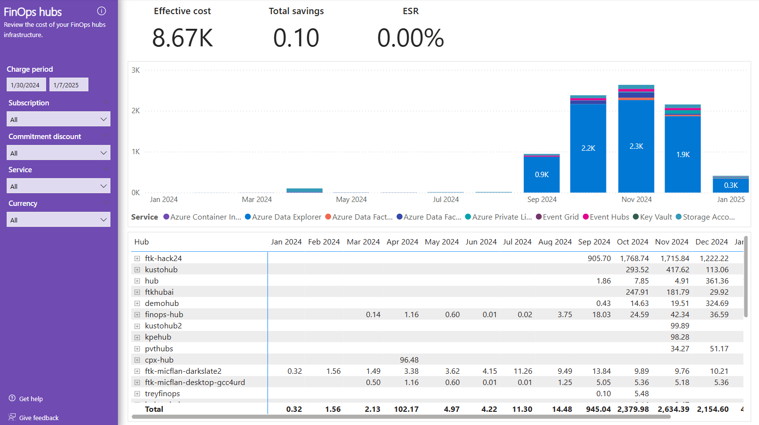 This report is only available for KQL reports connecting to FinOps hubs with Azure Data Explorer. It cannot be used with storage reports or direct Cost Management exports.