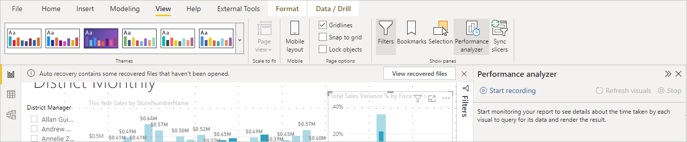Display the Performance Analyzer pane in Power BI Desktop