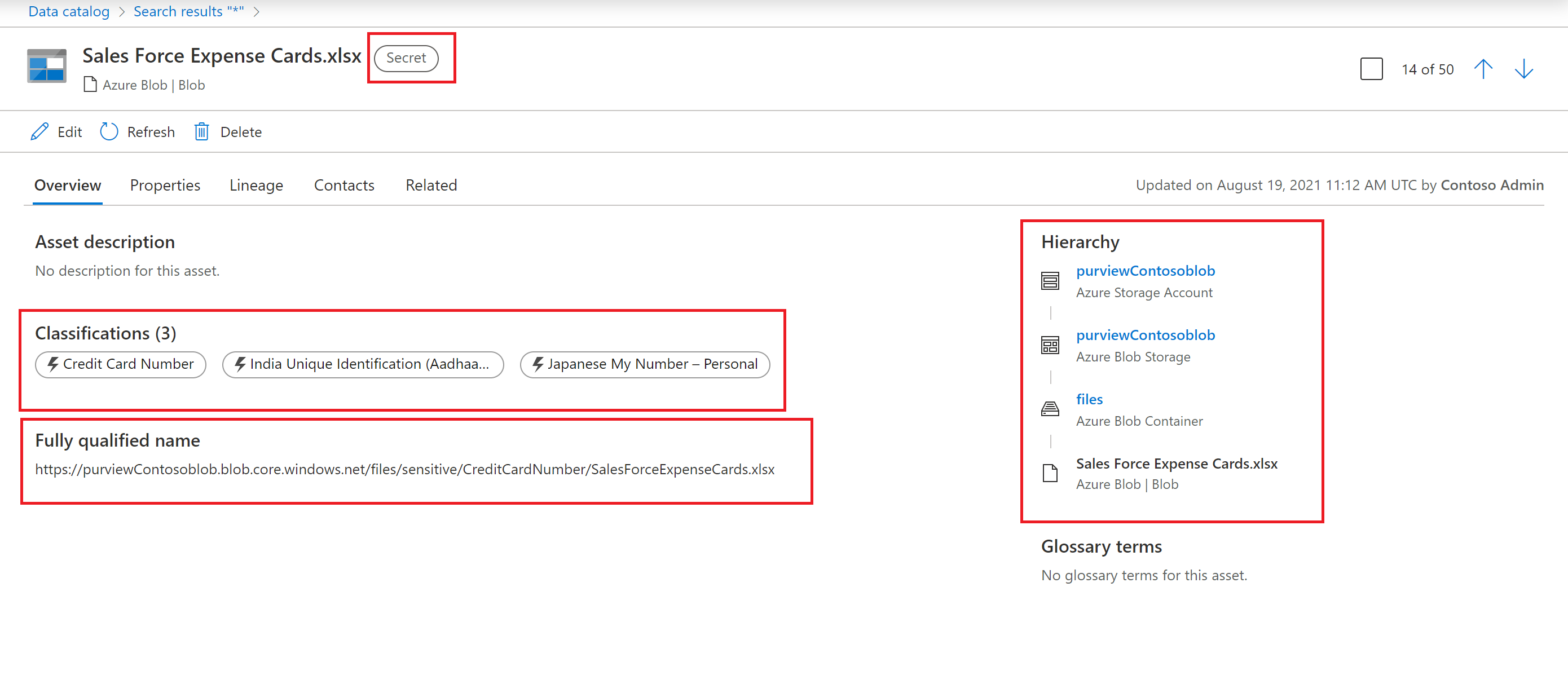 To view the labels applied to your assets in the Microsoft Purview catalog: