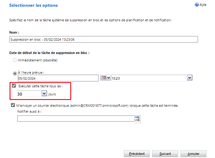Sélectionnez la date et l’heure de début de la tâche, de préférence une heure à laquelle personne n’utilise les applications d’engagement client.