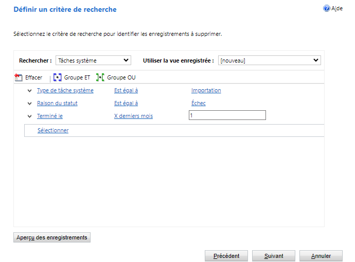 Pour chaque importation en bloc, une tâche système est associée à cette importation. Les détails de la tâche système montrent quels enregistrements ont été importés avec succès et quels enregistrements ont échoué.