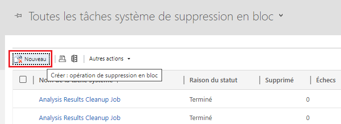 Lorsque vous supprimez ces tâches, vous perdez l’historique des tâches de suppression en bloc précédentes que vous avez exécutées.