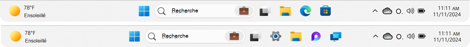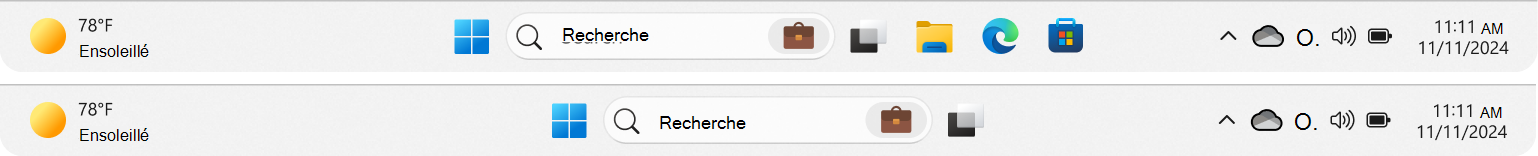 Lors d’une mise à niveau du système d’exploitation Windows, les applications sont déjà épinglées à la barre des tâches. La disposition de la barre des tâches applique la logique suivante :