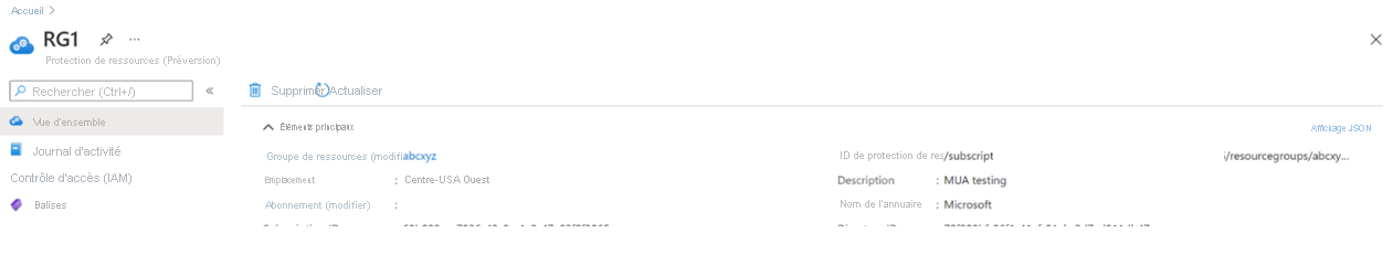 L’administrateur de sauvegarde NE DOIT PAS avoir d’accès Contributeur, Administrateur MUA de sauvegarde ou Opérateur MUA de sauvegarde sur la protection de ressource ou l’abonnement qui le contient.