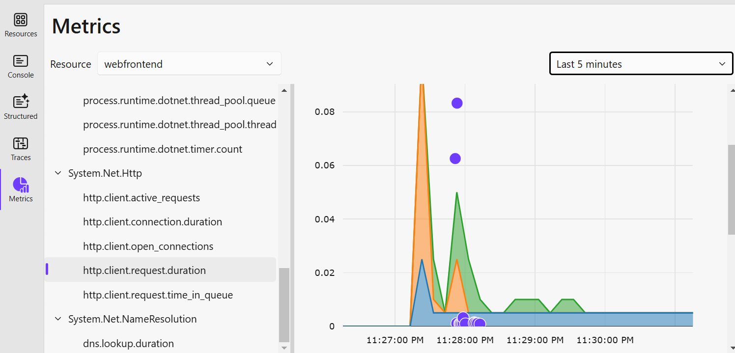 À partir de .NET 8, les composants System.Net.Http et System.Net.NameResolution sont instrumentés pour publier des métriques en utilisant la nouvelle API System.Diagnostics.Metrics de .NET .