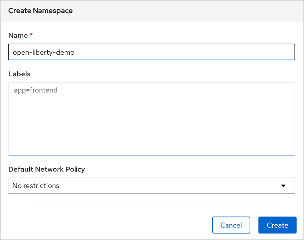 Étant donné que nous utilisons l’opérateur Open Liberty pour gérer les applications Liberty, nous devons créer une instance de sa définition de ressource personnalisée, de type OpenLibertyApplication. L’Operator prend en charge tous les aspects de la gestion des ressources OpenShift nécessaires au déploiement. Utilisez les étapes suivantes pour créer cette instance :