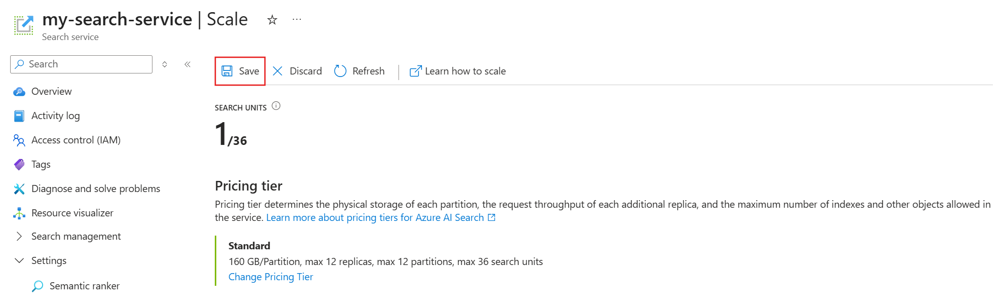 Votre niveau tarifaire détermine le stockage maximal de votre service de recherche. Si vous avez besoin de plus ou moins de capacité, vous pouvez basculer vers un autre niveau tarifaire qui répond à vos besoins de stockage.