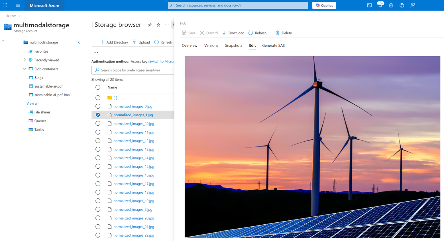 Dans Storage Browser, développez le conteneur durable-ai-pdf-images.