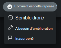 Si, pour une raison quelconque, Security Copilot avez trouvé une réponse inquiétante et inattendue, vous pouvez sélectionner Inapproprié et donner plus de détails.