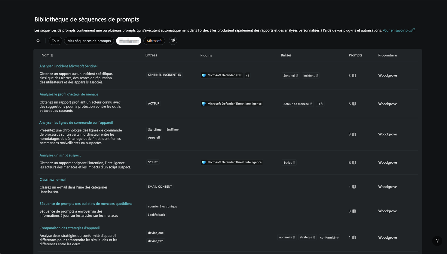 Pour en savoir plus sur les différents Security Copilot promptbooks, consultez Utilisation de promptbooks.
