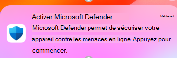 Ouvrez l’application Microsoft Defender ou appuyez sur le message de notification.