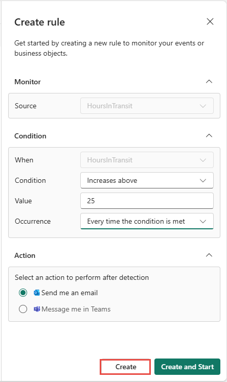 Utilisez une règle pour spécifier les valeurs d’événement que vous souhaitez surveiller, les conditions que vous souhaitez détecter et les actions que vous souhaitez que Fabric Activateor prenne.