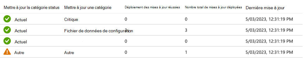 Une fois les stratégies de mise à jour déployées, dans le centre d’administration Intune, vous pouvez utiliser la fonctionnalité de création de rapports pour case activée l’status des mises à jour.