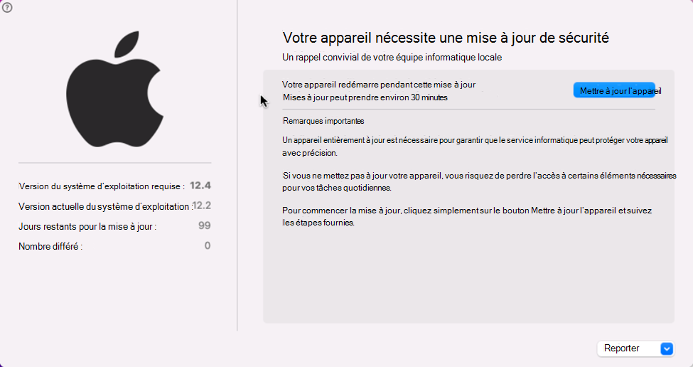 Utilisez cet article comme guide d’administration pour vos appareils macOS inscrits et gérés. Ces informations peuvent vous aider à gérer les mises à jour logicielles sur vos appareils appartenant à organization.