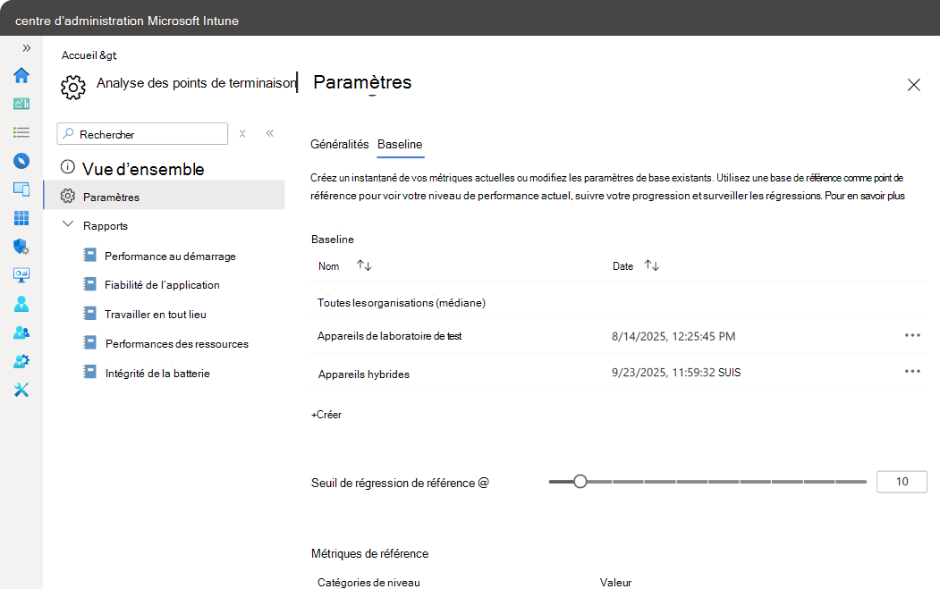 Pour créer une base de référence personnalisée et ajuster le seuil de régression :
