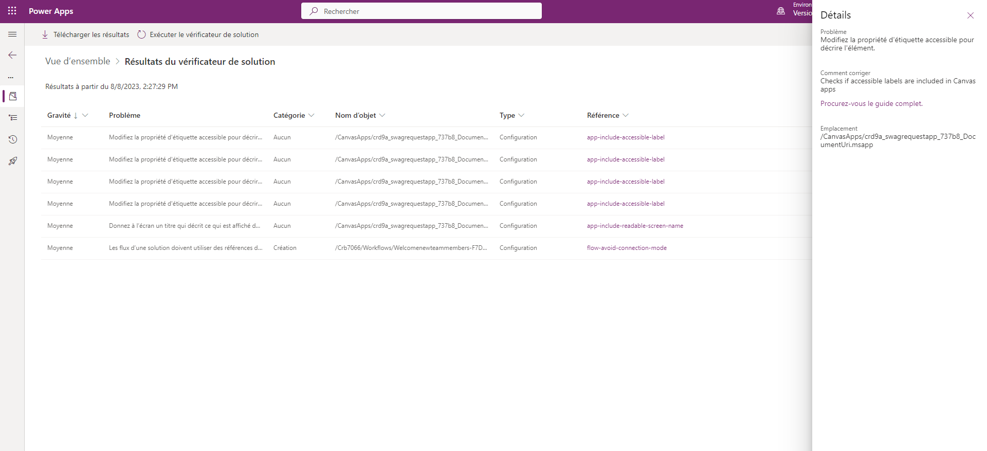 Vous pouvez exécuter le vérificateur de solution soit à partir de Power Apps (make.powerapps.com), soit en utilisant PowerShell.