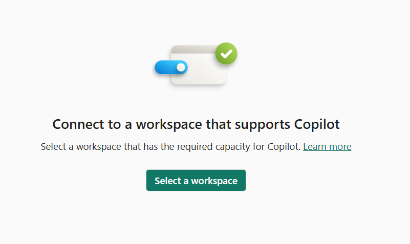Pour l’utiliser Copilot dans Power BI Desktop, si vous n’avez pas accès à une capacité FabricCopilot, vous avez besoin d’un accès administrateur, membre ou contributeur à au moins un espace de travail affecté à une capacité Fabric payante (F2 ou supérieure) ou à une capacité Power BI Premium (P1 ou ultérieure) qui a Copilot été activée.