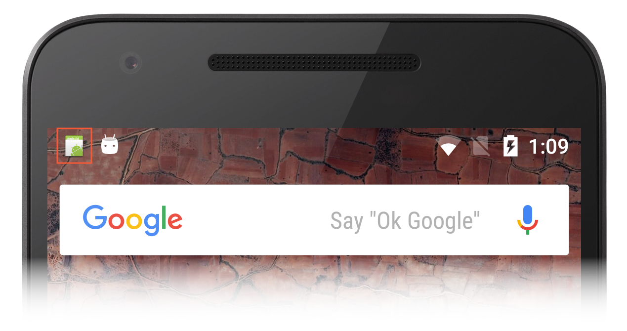 Cette fois, le message qui a été enregistré dans la fenêtre de sortie est également empaqueté dans une nouvelle notification : l’icône de notification apparaît dans la barre d’état de notification pendant que l’application s’exécute au premier plan :