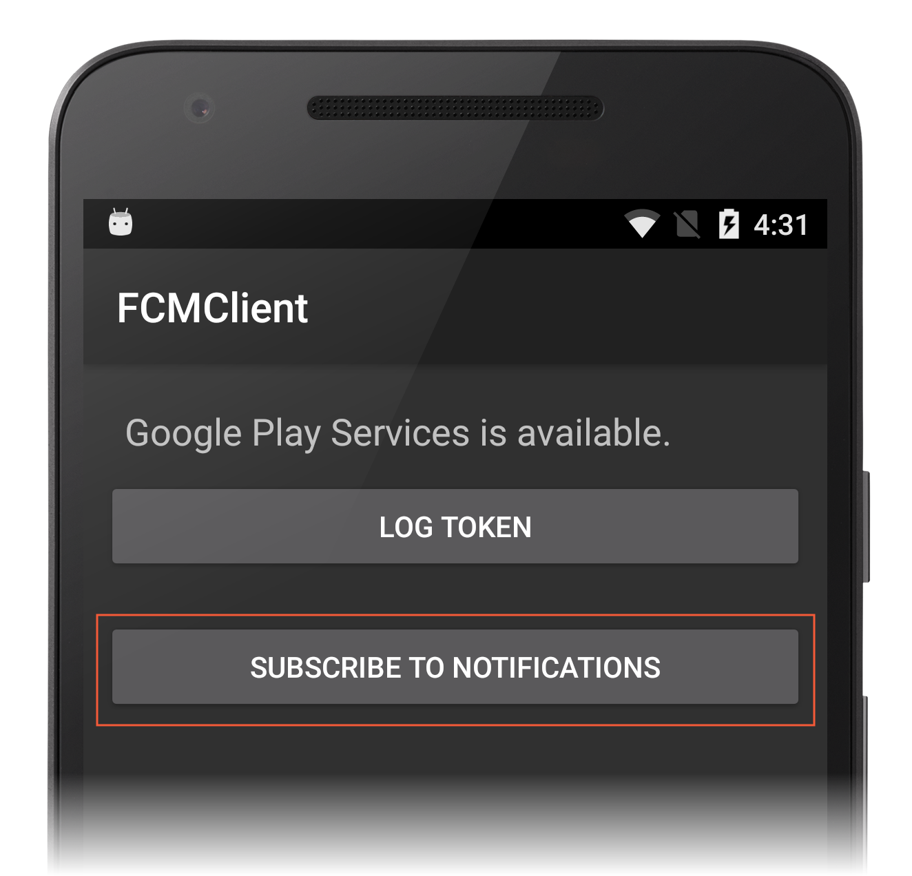Dans cette procédure pas à pas, une application de base appelée FCMClient sera créée pour illustrer les éléments essentiels de la messagerie FCM. FCMClient case activée s pour la présence de Google Play Services, reçoit des jetons d’inscription de FCM, affiche les notifications à distance que vous envoyez à partir de la console Firebase et s’abonne aux messages de rubrique :