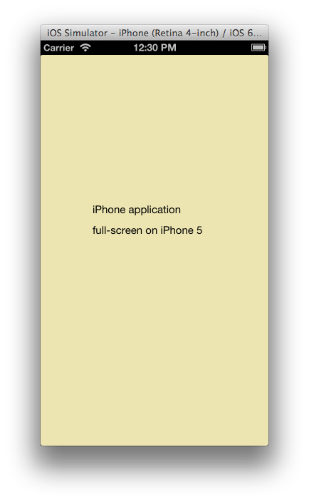 Pour que l’application apparaisse en plein écran sur iPhone 5, ajoutez simplement une image nommée Default-568h@2x.png ayant une résolution de 640 x 1136. La capture d’écran suivante montre l’application en cours d’exécution une fois cette image incluse :