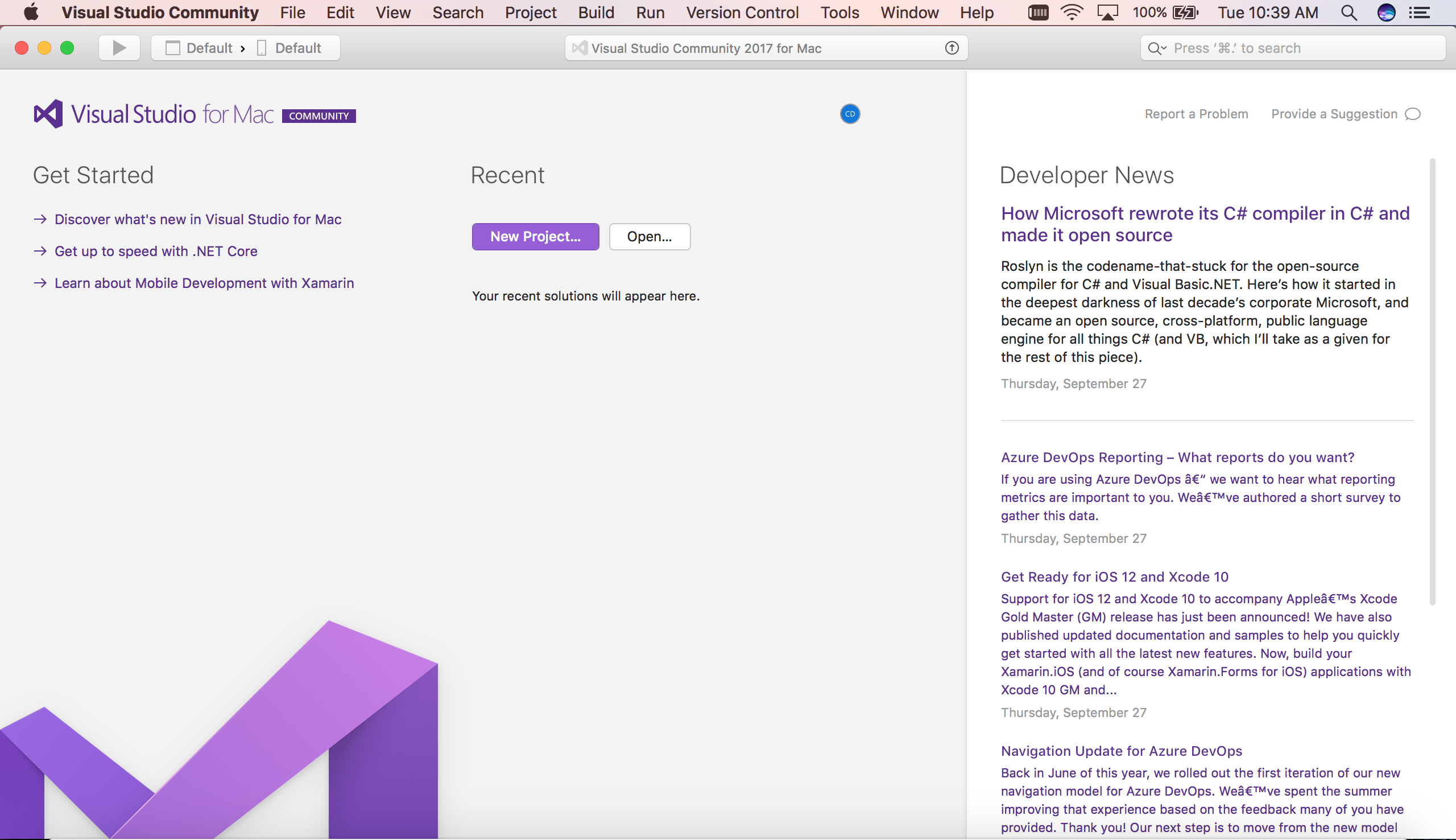 Démarrez Visual Studio pour Mac :