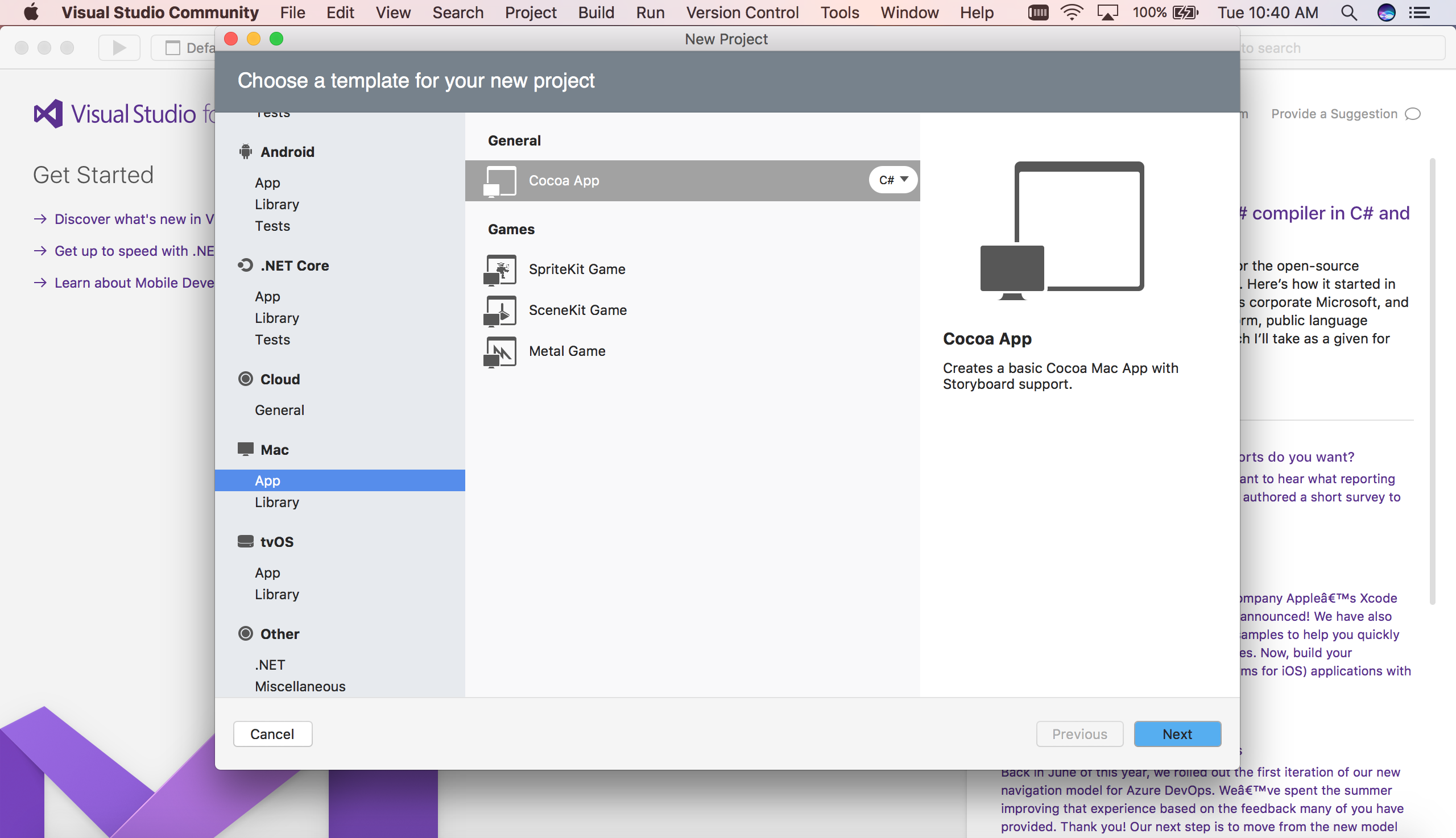 - La dernière version de Xamarin.Mac et Visual Studio pour Mac.