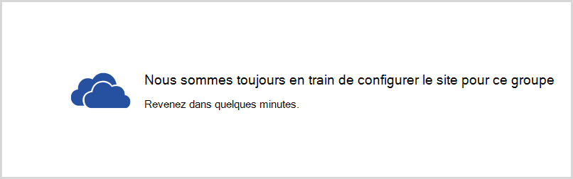 Lorsqu’un utilisateur crée un site d’équipe à partir du web, l’utilisateur voit le message « Nous sommes toujours en train de configurer le site pour ce groupe », mais le site n’est pas créé.