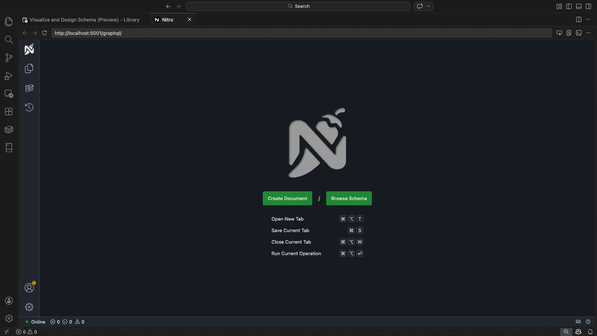 Sélectionnez Nitro pour ouvrir le terrain de jeu Nitro GraphQL, où vous pouvez écrire et tester des requêtes graphQL et des mutations interactives.