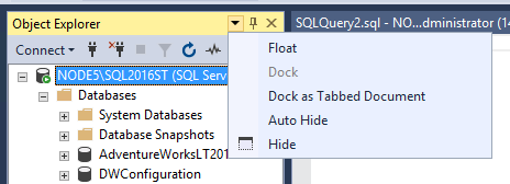 Explorateur d’objets (F8) : l’Explorateur d’objets est une arborescence de tous les objets d’une base de données ou d’un serveur. Cette vue inclut les bases de données du moteur de base de données SQL Server, SQL Server Analysis Services, SQL Server Reporting Services et SQL Server Integration Services. L’Explorateur d’objets affiche des informations pour tous les serveurs auxquels il existe une connexion.