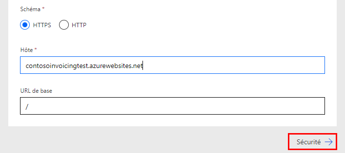 Saisissez contosoinvoicingtest.azurewebsites.net pour l’Hôte.