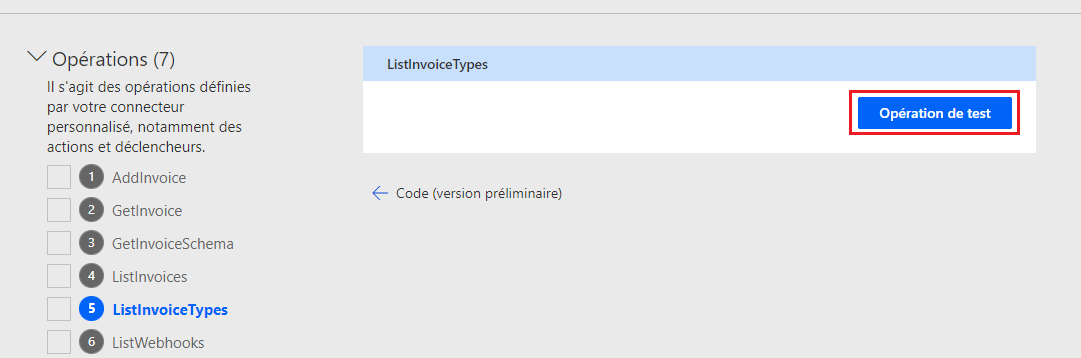Sélectionnez ListInvoiceTypes > Opération de test.