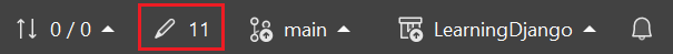 Dans la barre de contrôles Git, sélectionnez les modifications non validées (crayon 11) pour ouvrir la fenêtre Modifications Git :