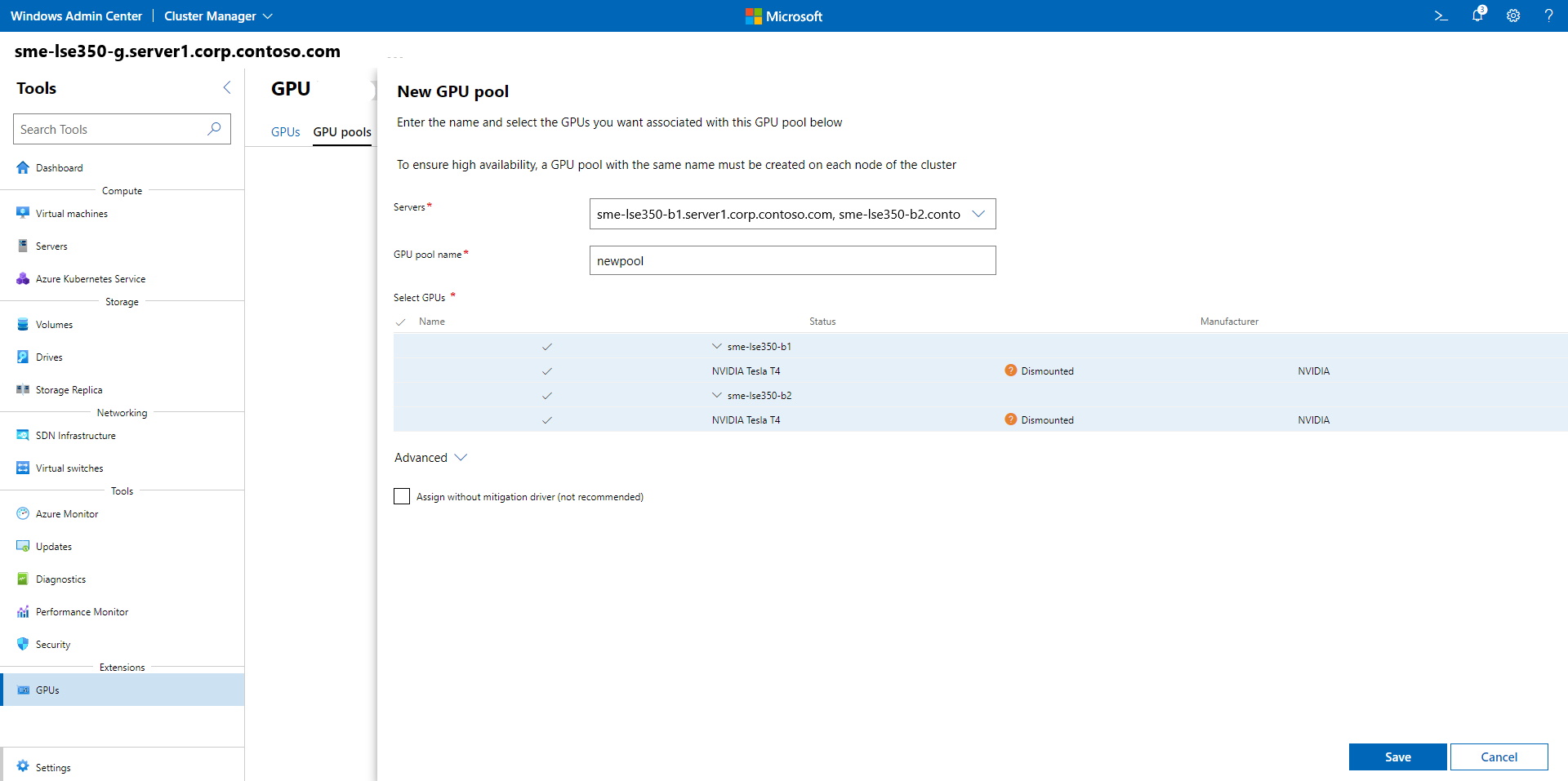 À l'aide de Windows Admin Center, suivez les étapes suivantes pour préparer le cluster à utiliser des GPU avec des machines virtuelles en cluster.