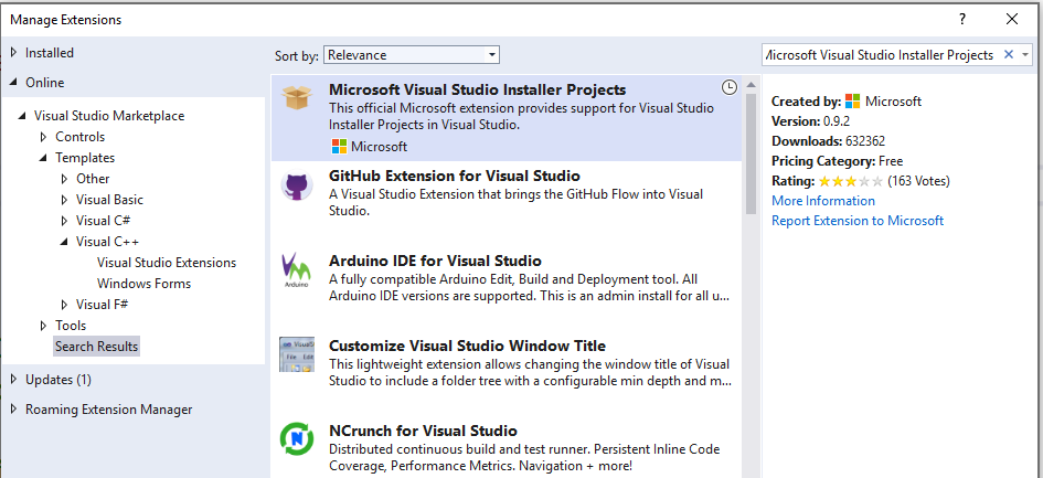 Extension Projets microsoft Visual Studio Installer. L’extension est gratuite pour les développeurs Visual Studio et ajoute les fonctionnalités des modèles de projet d’installation et de déploiement à Visual Studio.